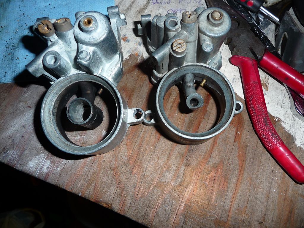Had a peep at early carburettor pics as well: left hand one is early, right hand one is late. The two normally don't mix, something to do with different top cover venting (change to plastic elbow identifies). ---------------------- |